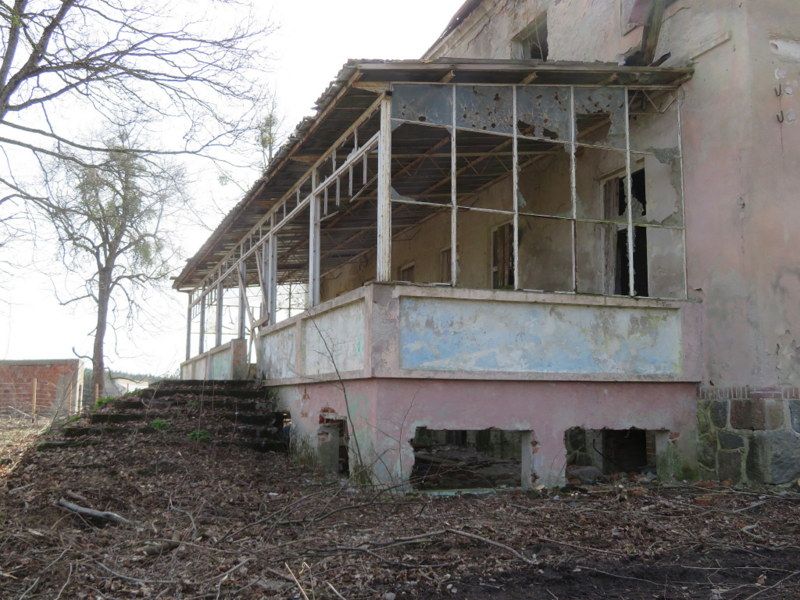 Das Gutshaus ist eine Ruine. Große Teile des Daches sind eingestürzt. Gras und kleine Bäume wachsen aus den Mauern und auf dem Dach. Die Fenster- und Türöffnungen wurden notdürftig mit Brettern vernagelt. Die großflächigen Fensterscheiben der Veranda sind zerschlagen. Auch das Innere des Hauses fiel der mutwilligen Zerstörung zum Opfer.